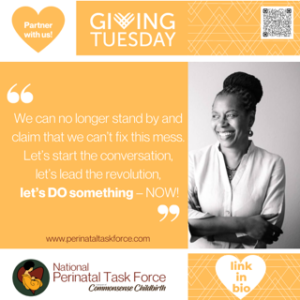 This Giving Tuesday, please join us in our mission to eliminate disparities in every Materno-Toxic area in the United States. Your financial support, in combination with the passion and commitment of our Perinatal Safe Spot members, allows us to continue to lead the revolution toward safety for Every Person, EveryTime